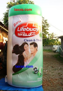 lifebuoy ikembali lagi mempromosikan produk barunya lifebuoy Clean & Thick untuk rambut yang akan menyehatkan rambut keluarga anda. di samping ini mereka membuat balon botol kemasan dengan ukuran yang sangat besar dari yg aslinya.