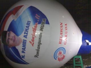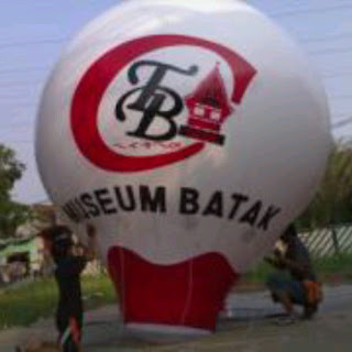 Tampak balon udara oval yg pesan ke kami siap mengudara tuk launching museum batak di medan.